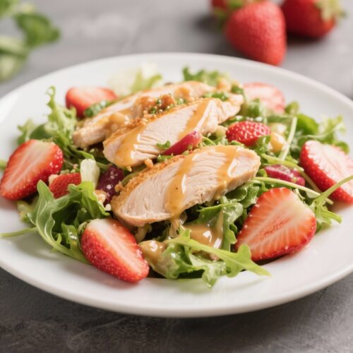 High-Protein Strawberry Chicken Spring Salad with Light Honey Dressing