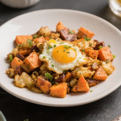 This sweet potato breakfast hash checks all the boxes: hearty, naturally gluten free, and high in protein without feeling heavy. It’s the kind of meal that keeps you full for hours and tastes great any time of day. You get crispy edges, tender centers, and a balance of savory and slightly sweet flavors.