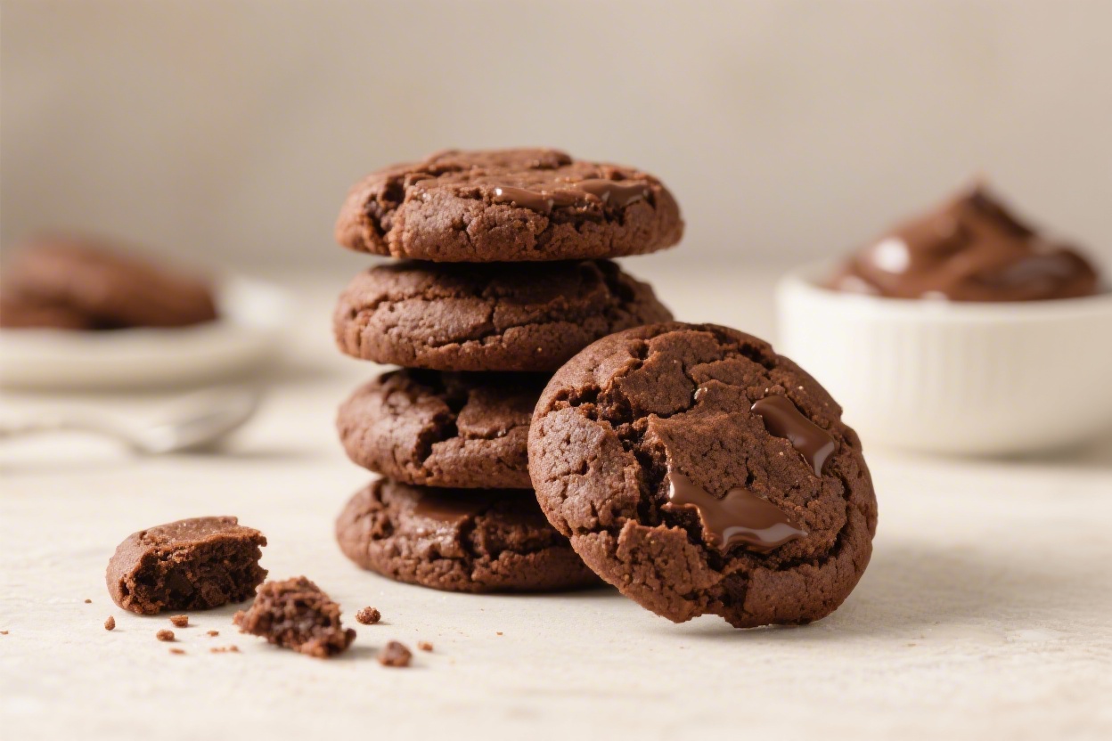 - Flourless batter = fudgy texture: Without flour, the cookies stay moist and dense, like the center of a brownie.